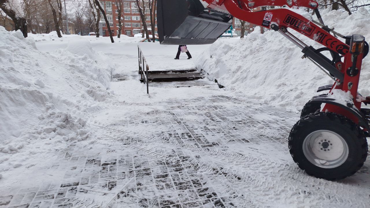 Во-вторых, полностью вычистили пешеходные дорожки и проезды от снега.
