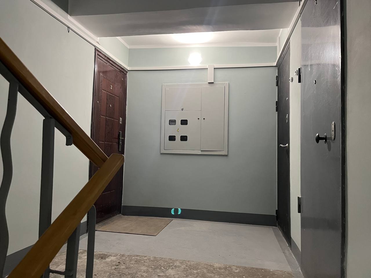 После того, как работы с декоративным покрытием были закончены, мы продолжили работать над мелкими деталями, чтобы жителям было комфортно и уютно в собственном подъезде. Уложили провода в кабель-каналы. Убрали старые поручни и установили новые —