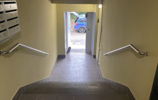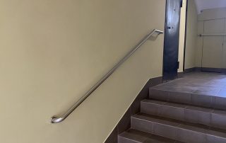В конце сентября мы закончили ремонт в подъезде на ул. Советской, 25. Там еще остались небольшие косметические детали, которыми как раз сейчас занимаемся. На прошлой неделе, например, установили пристенные поручни. Перила выбрали металлические, повышенной прочности, устойчивые к внешним воздействиям. Надеемся,