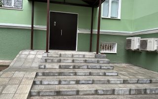 Когда-то с торца дома по ул. Монастырской, 87 было мощное бетонное крыльцо. Массивная лестница вселяла уверенность и вела ко входу в одну из многочисленных муниципальных организаций города. Со временем крыльцо ветшало, бетон осыпался. К лету 2023 года на лестницу было