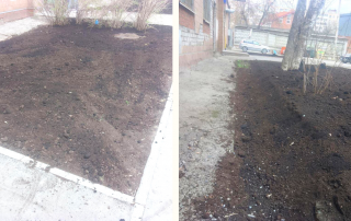 Вычистили газоны от строительного мусора на ул. Соловьева, 9