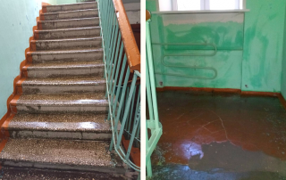 После зимы мы приводим в порядок не только дворы, но и подъезды – проводим генеральные уборки, отмываем места общего пользования от пола и до потолка. На прошлой неделе у нас прошли генеральные уборки подъездов сразу в 7 домах: ул. Краснова,