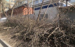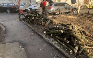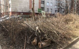 Недавно, пока деревья еще не покрылись листвой, мы провели кронирование на ул. Монастырской, 87. Там стояли раскидистые, слегка покосившиеся под тяжестью веток многолетние гиганты. Ветви опасно свисали на тротуар. Кажется, стоит подуть сильному ветру, и ветки надломятся, а то и