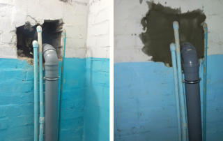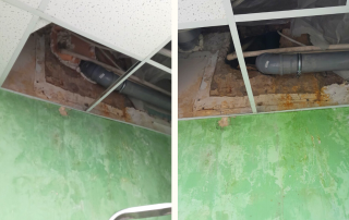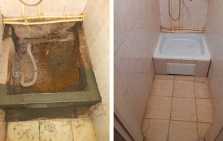 На прошлой неделе завершили ремонт поддонов в душевых общежития на ул. Куйбышева, 105. Там от времени и влажности, которая в душевой – явление обычное, начали разрушаться конструкции, поддерживающие душевые поддоны. Влага начала попадать в перекрытия. А это уже опасно для