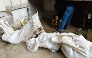 В конце прошлого года мы прибрались в подвале на ул. М.Ямской, 2а. Мусор рассортировали по строительным мешкам. Составили эти мешки в одном углу, но не вывезли. Мешки остались зимовать в подвале. В середине июля мы закончили начатое. Вытащили из подвала