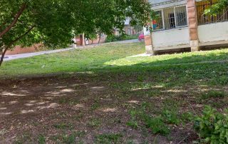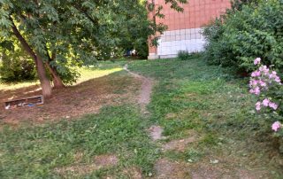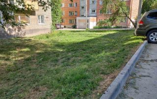 И снова мы во дворе, ограниченном домами ул. Горького, 58, ул. М.Ямская, 2а и ул. М.Ямская, 5а. В третий раз за это лето косим траву. Что поделать, ее уговаривать расти не нужно. Достаточно земли и плюсовой температуры на улице и