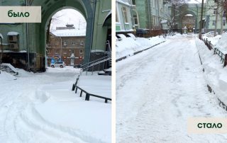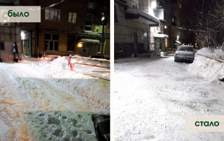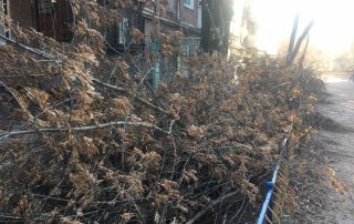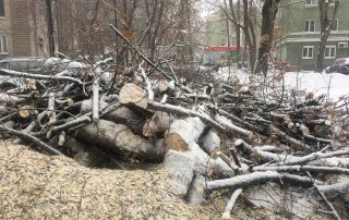 В конце ноября мы кронировали деревья во дворе на ул. Героев Хасана, 4. Там стояли раскидистые, слегка покосившиеся под тяжестью веток многолетние гиганты. Ветви опасно свисали на тротуар и детскую площадку. Кажется, стоит подуть сильному ветру, и ветки надломятся, а